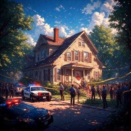 A small crowd had already gathered outside a house three blocks down from the B&B. The scene unfolded in surreal stillness, broken only by the periodic squawk of a radio or murmured conversation. Sam scanned the onlookers, noting how many seemed just as unsure as she felt. They stood in clusters, their faces etched with the universal need to know what had happened.